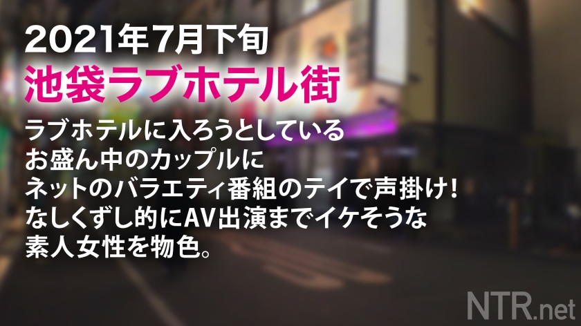 あらすじ:【NTR=寝取られ・寝取り】このAVは素人カップルと男優の背徳まみれSEXを撮影してカップルの心情を追うNTRドキュメント企画AVです。今回は、ホテル外でデート中の男女に声を掛けネトラレカップルを探すことに。
